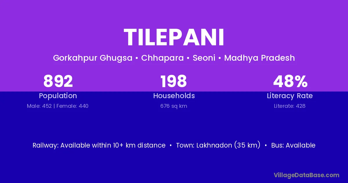 Lakhnadon (35 km) is the nearest town to Tilepani village for major economic activities and is located approximately 35 km away.