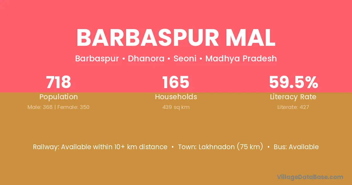 Lakhnadon (75 km) is the nearest town to Barbaspur Mal village for major economic activities and is located approximately 75 km away.
