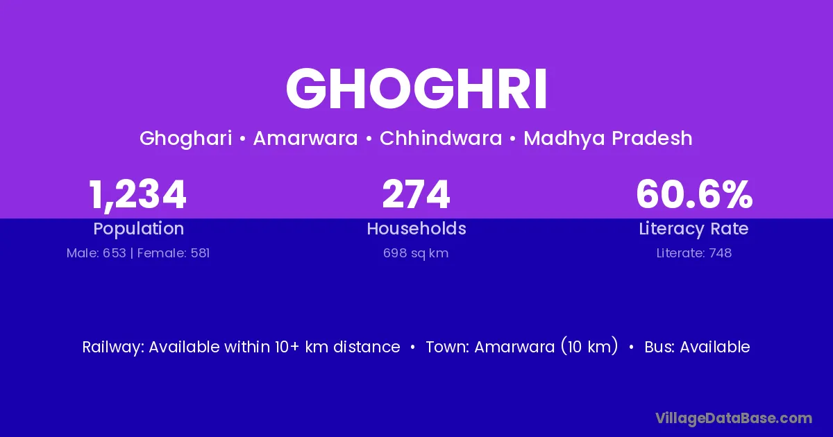 Lakhnadon (40 km) is the nearest town to Ghoghri village for major economic activities and is located approximately 40 km away.