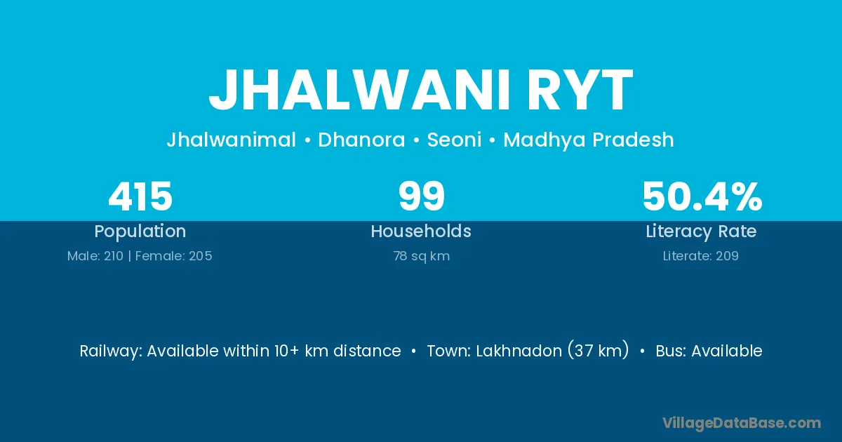 Lakhnadon (37 km) is the nearest town to Jhalwani Ryt village for major economic activities and is located approximately 37 km away.