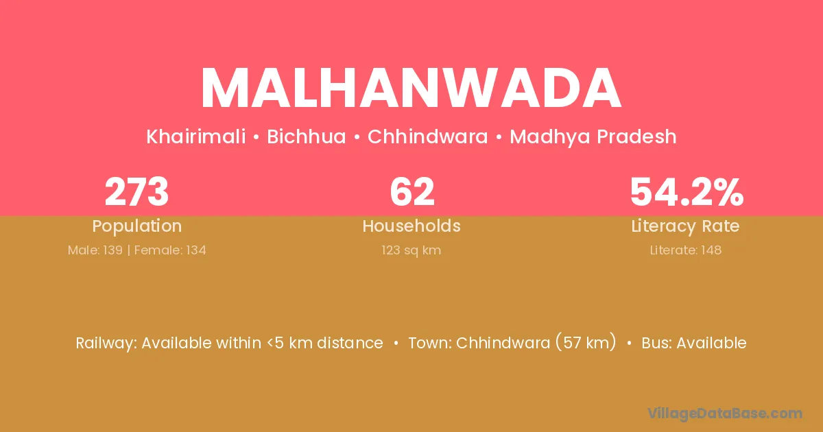 Lakhnadon (47 km) is the nearest town to Malhanwada village for major economic activities and is located approximately 47 km away.