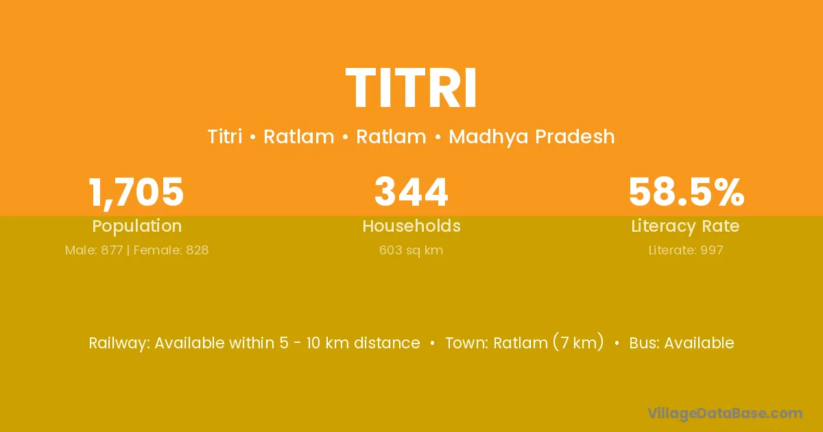 The literacy rate of Titri village is 43.47%. Male literacy stands at 47.25% and female literacy at 39.41%.