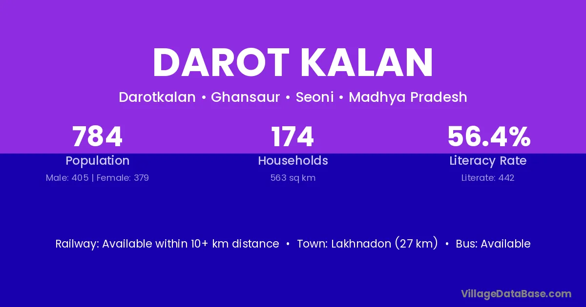 Lakhnadon (27 km) is the nearest town to Darot Kalan village for major economic activities and is located approximately 27 km away.