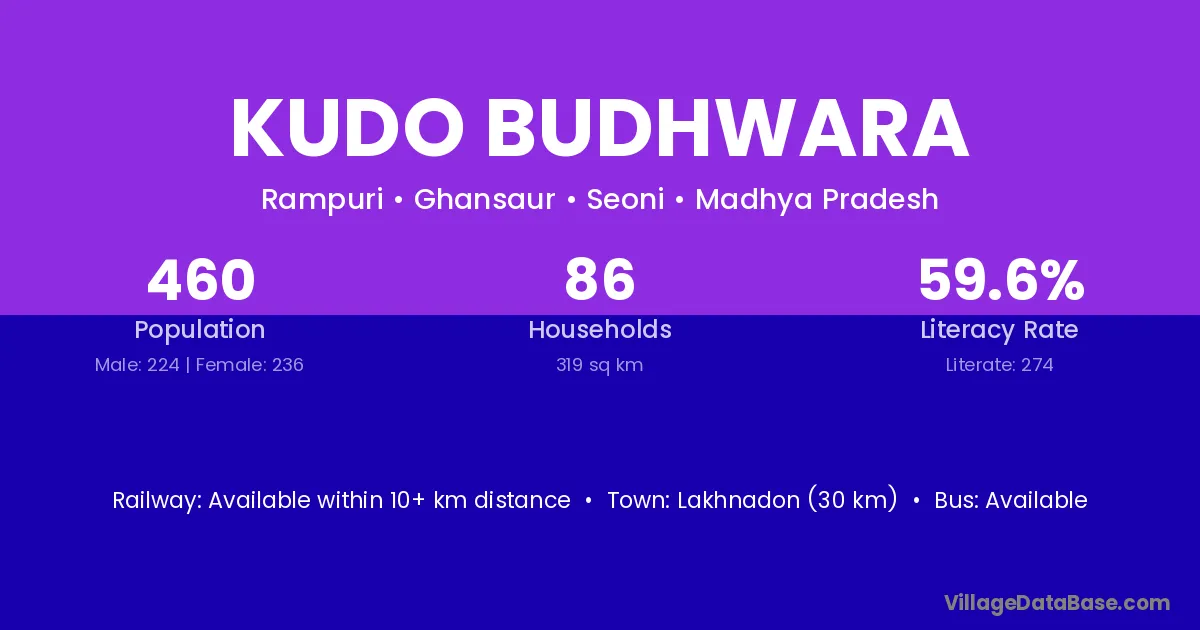 Lakhnadon (30 km) is the nearest town to Kudo Budhwara village for major economic activities and is located approximately 30 km away.