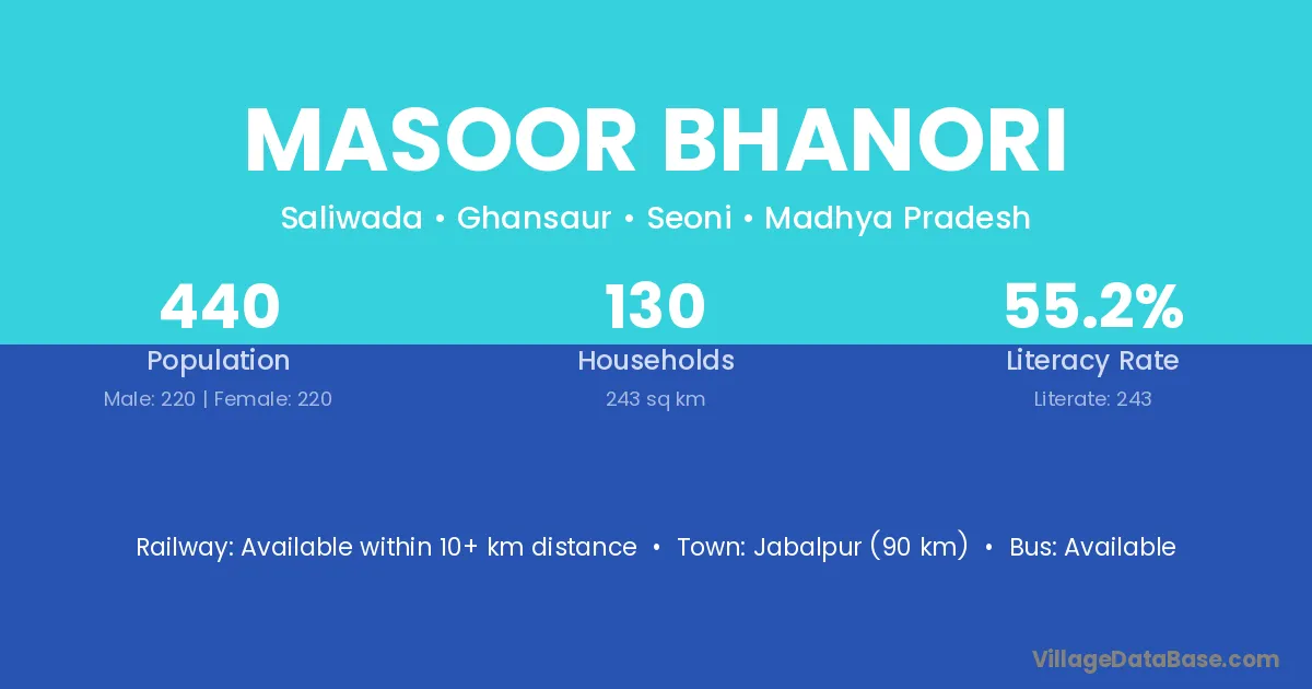 Masoor Bhanori village has a total population of 440 people, of which 220 are males and 220 are females.