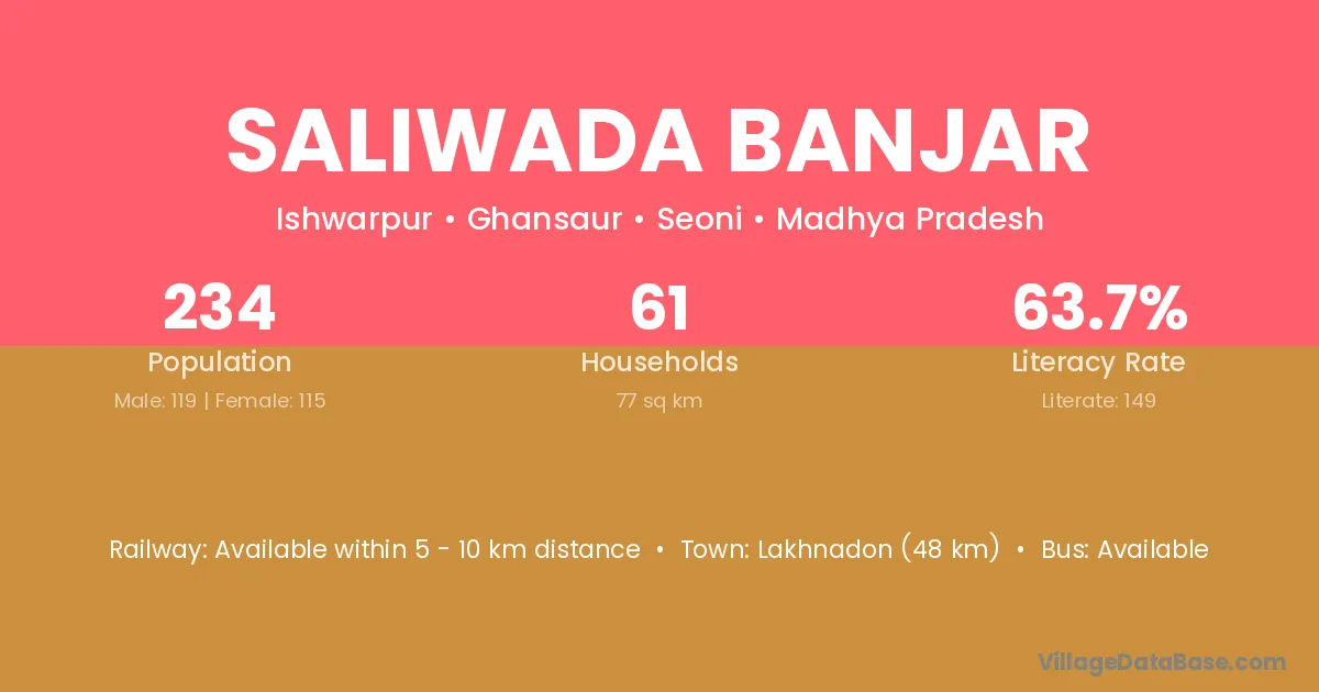 Lakhnadon (48 km) is the nearest town to Saliwada Banjar village for major economic activities and is located approximately 48 km away.