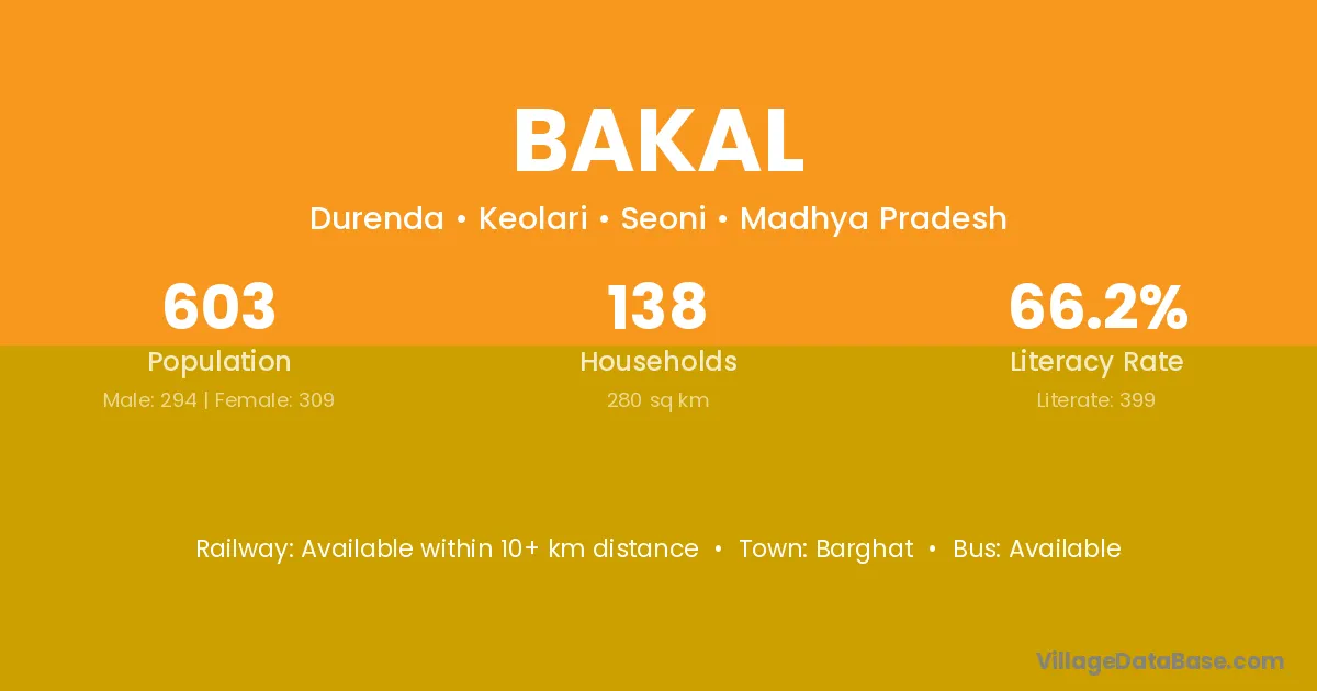 Bakal village has a total population of 603 people, of which 294 are males and 309 are females.