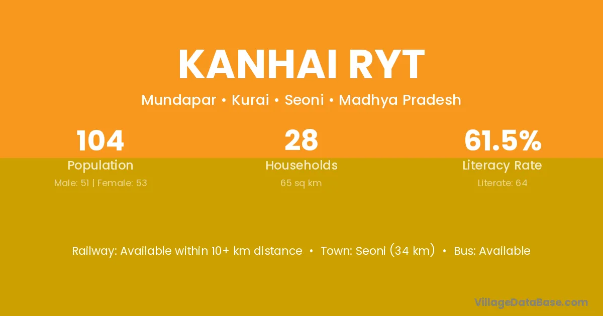 Seoni (34 km) is the nearest town to Kanhai Ryt village for major economic activities and is located approximately 34 km away.