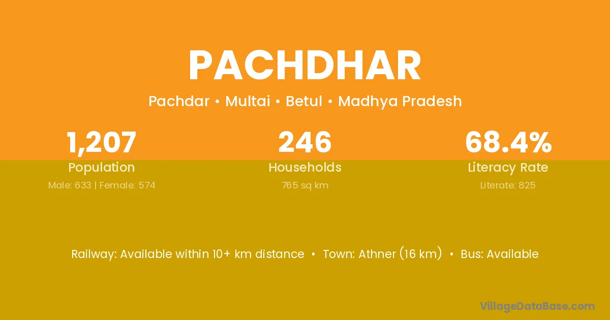 Seoni (44 km) is the nearest town to Pachdhar village for major economic activities and is located approximately 44 km away.