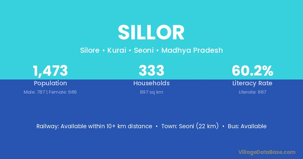 Seoni (22 km) is the nearest town to Sillor village for major economic activities and is located approximately 22 km away.