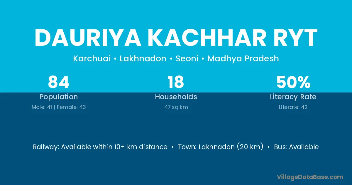 Dauriya Kachhar Ryt village has a total population of 84 people, of which 41 are males and 43 are females.