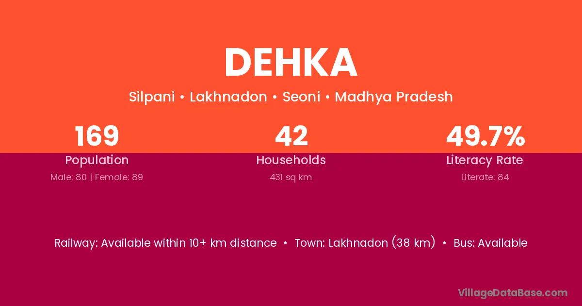 Lakhnadon (38 km) is the nearest town to Dehka village for major economic activities and is located approximately 38 km away.