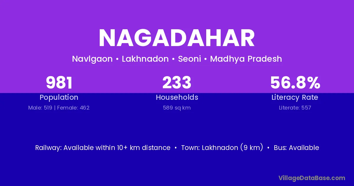 Lakhnadon (9 km) is the nearest town to Nagadahar village for major economic activities and is located approximately 9 km away.
