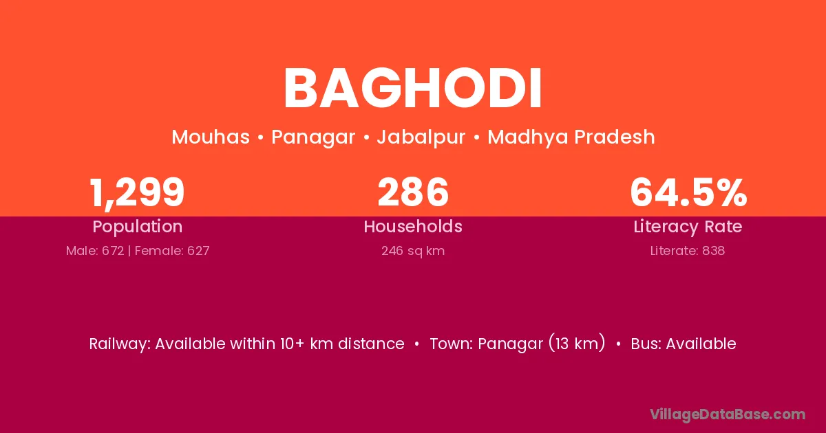 Seoni (12 km) is the nearest town to Baghodi village for major economic activities and is located approximately 12 km away.