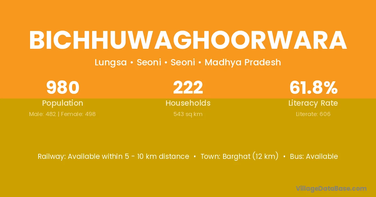 Bichhuwaghoorwara village has a total population of 980 people, of which 482 are males and 498 are females.