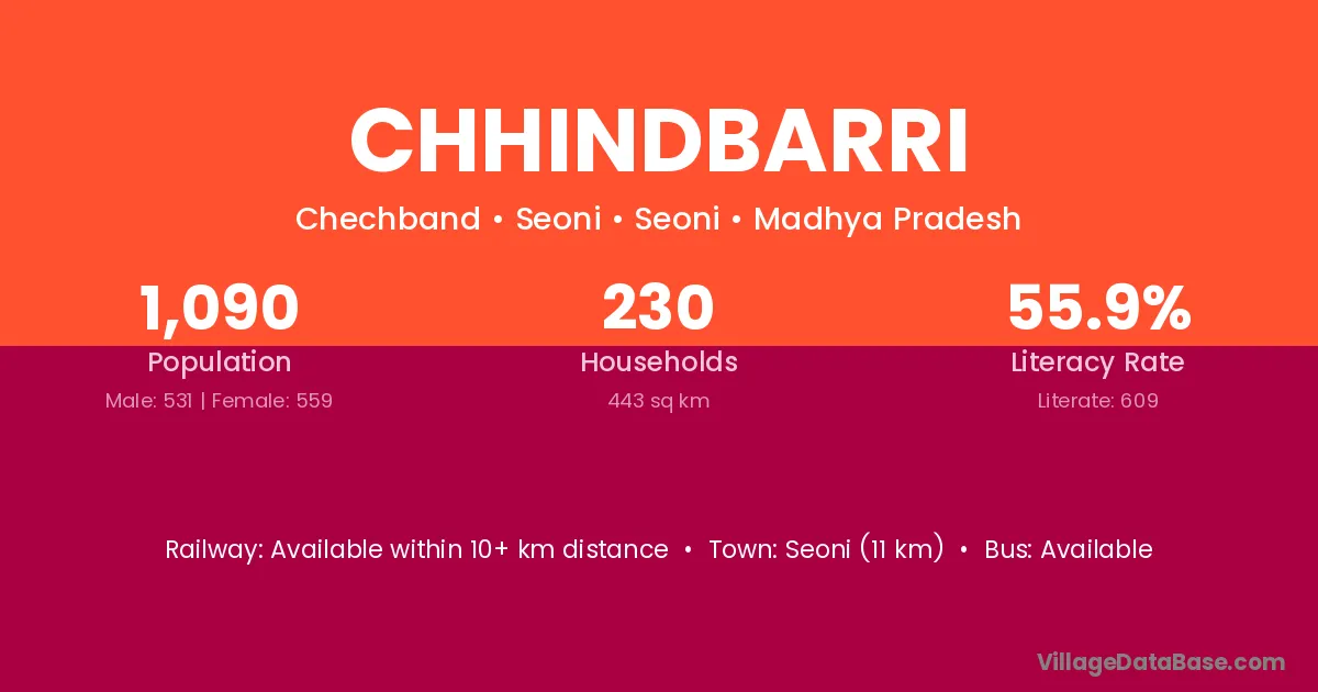 Seoni (11 km) is the nearest town to Chhindbarri village for major economic activities and is located approximately 11 km away.