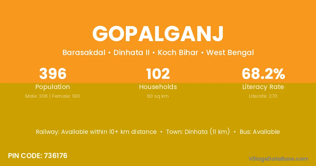 The literacy rate of Gopalganj village is 69.45%. Male literacy stands at 76.26% and female literacy at 62.31%.