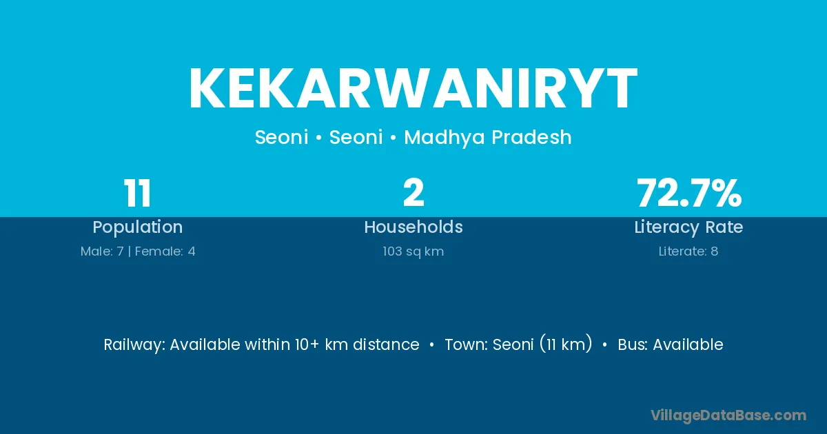 Seoni (11 km) is the nearest town to Kekarwaniryt village for major economic activities and is located approximately 11 km away.