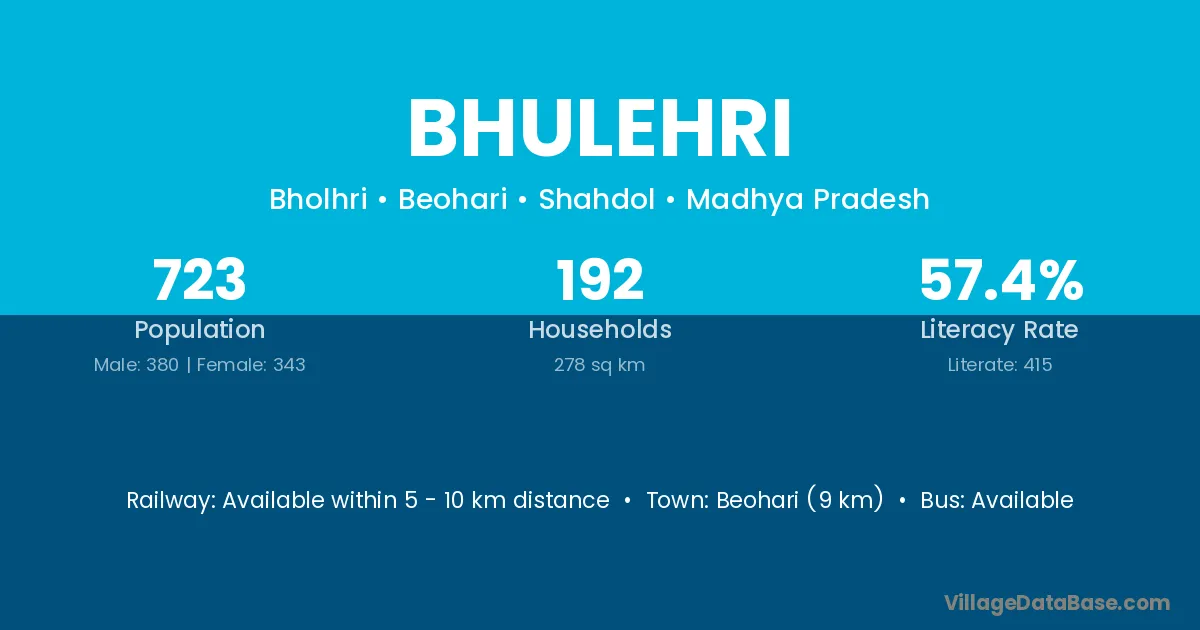 Beohari (9 km) is the nearest town to Bhulehri village for major economic activities and is located approximately 9 km away.