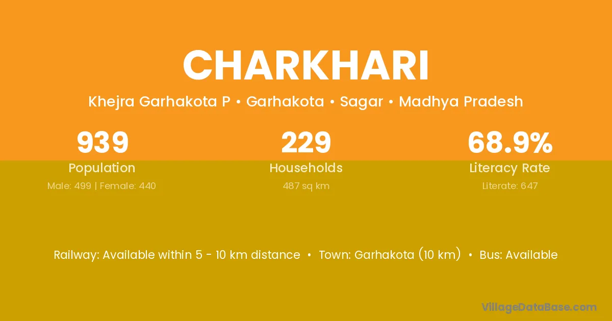 There are approximately 425 households in Charkhari village.