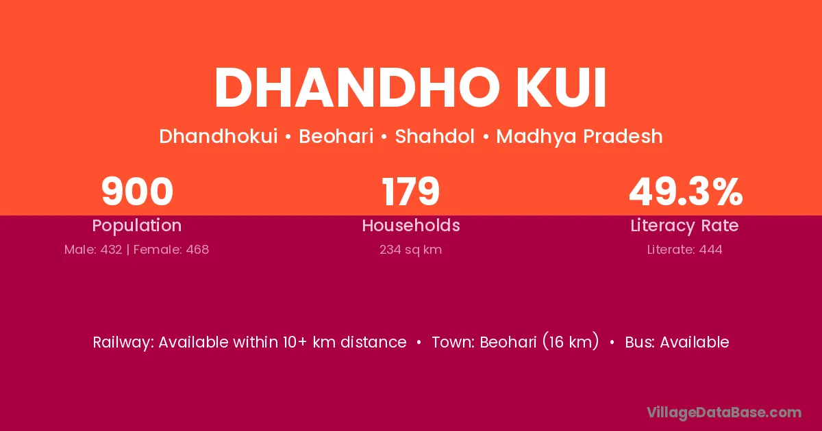 Beohari (16 km) is the nearest town to Dhandho Kui village for major economic activities and is located approximately 16 km away.