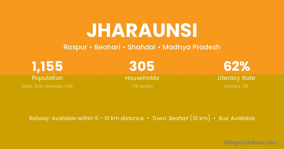 Beohari (10 km) is the nearest town to Jharaunsi village for major economic activities and is located approximately 10 km away.