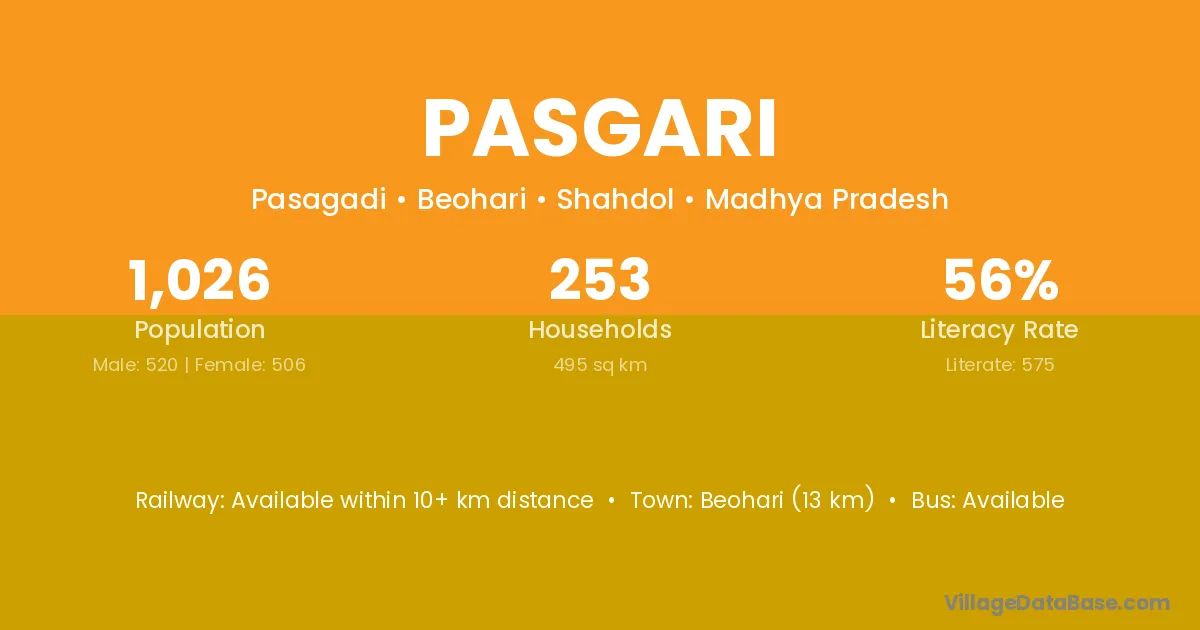 Beohari (13 km) is the nearest town to Pasgari village for major economic activities and is located approximately 13 km away.