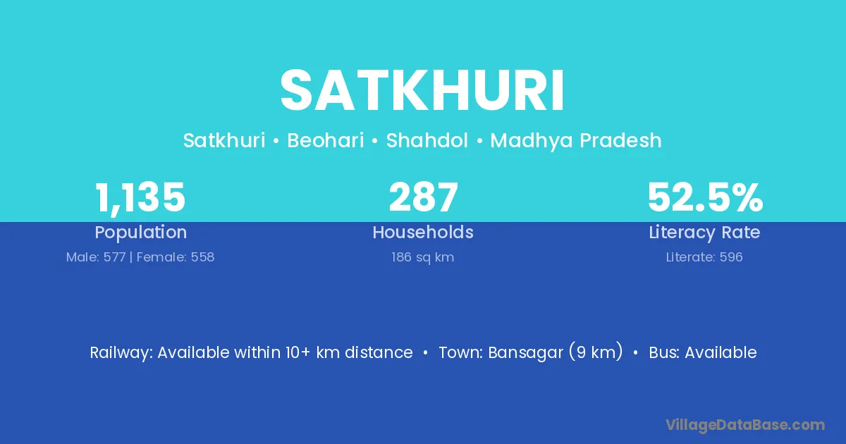 Bansagar (9 km) is the nearest town to Satkhuri village for major economic activities and is located approximately 9 km away.