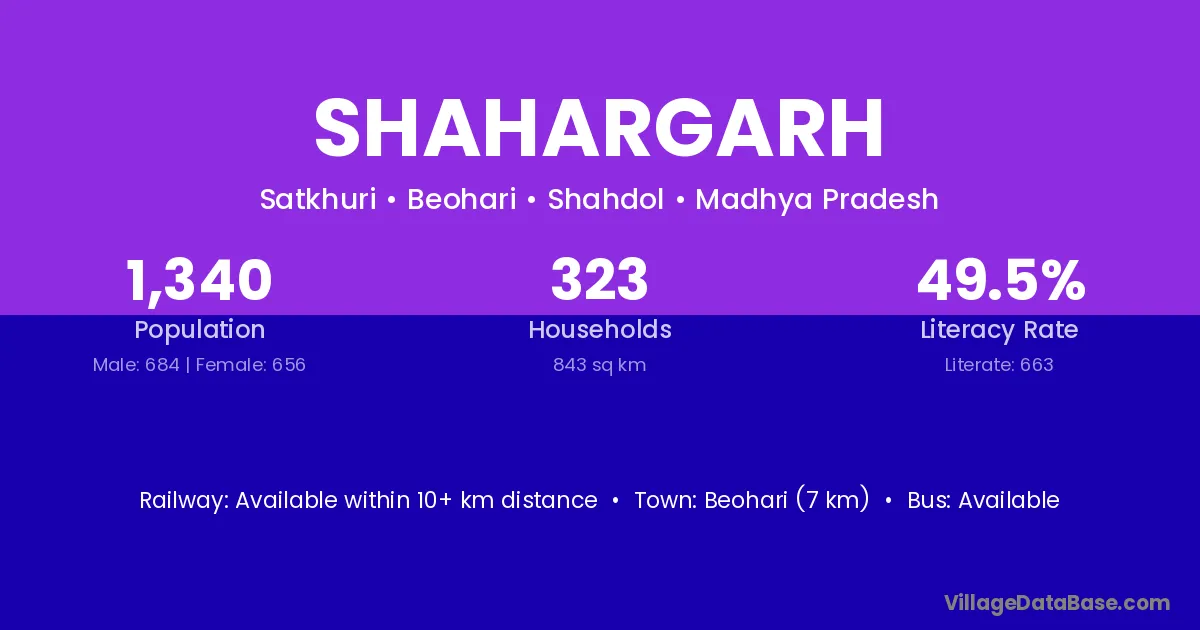 Beohari (7 km) is the nearest town to Shahargarh village for major economic activities and is located approximately 7 km away.