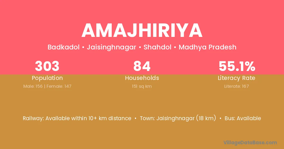 Amajhiriya village has a total population of 303 people, of which 156 are males and 147 are females.