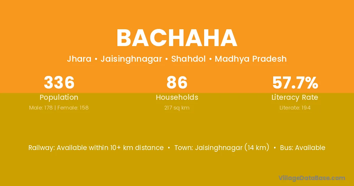 Bachaha village has a total population of 336 people, of which 178 are males and 158 are females.