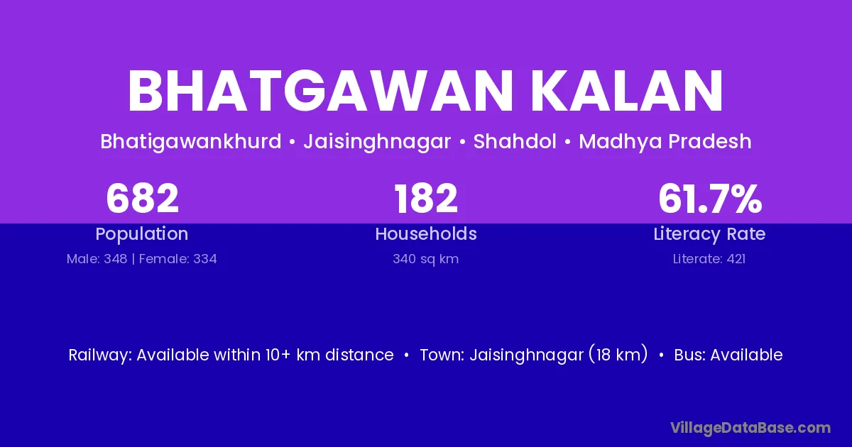 Bhatgawan Kalan village has a total population of 682 people, of which 348 are males and 334 are females.