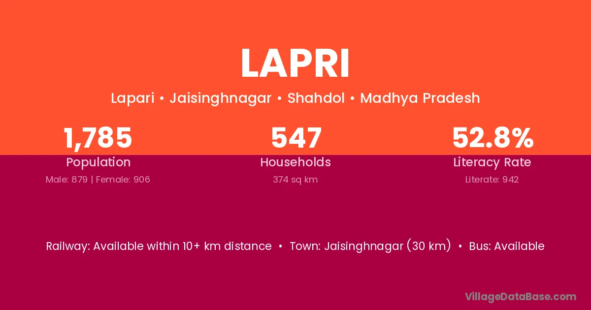 Jaisinghnagar (30 km) is the nearest town to Lapri village for major economic activities and is located approximately 30 km away.