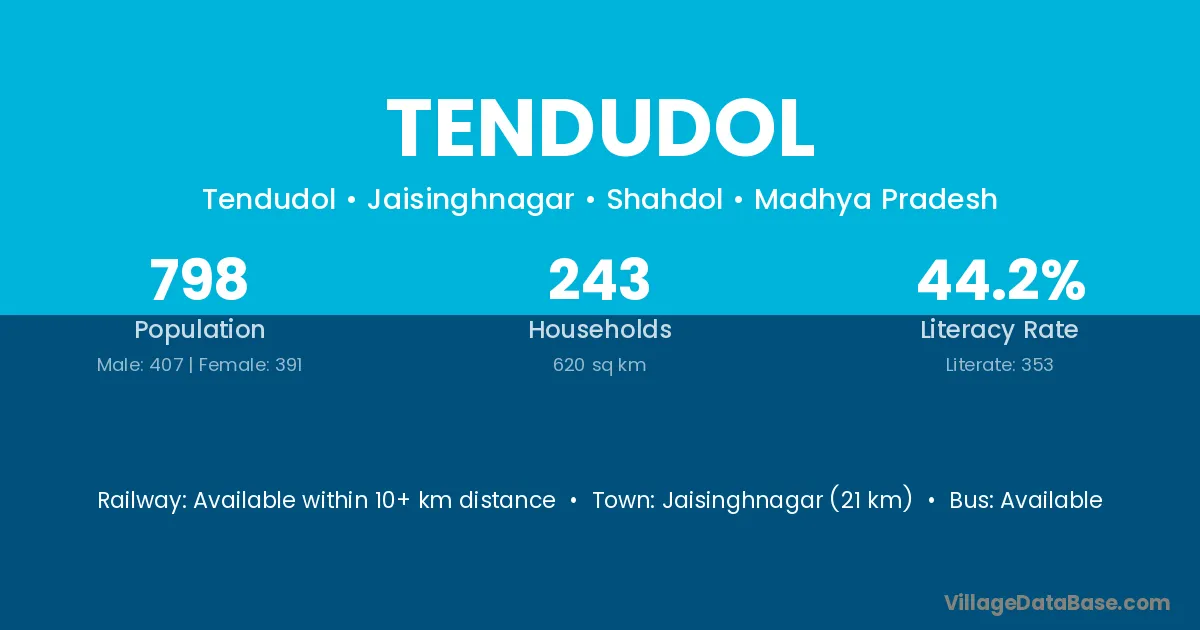 Jaisinghnagar (21 km) is the nearest town to Tendudol village for major economic activities and is located approximately 21 km away.