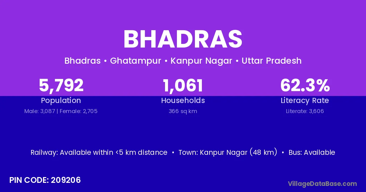 Shahdol (30 km) is the nearest town to Bhadras village for major economic activities and is located approximately 30 km away.