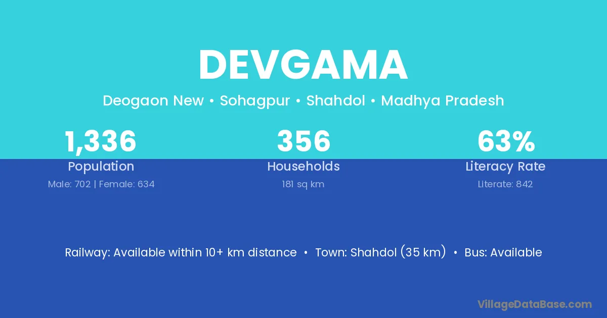 Shahdol (35 km) is the nearest town to Devgama village for major economic activities and is located approximately 35 km away.