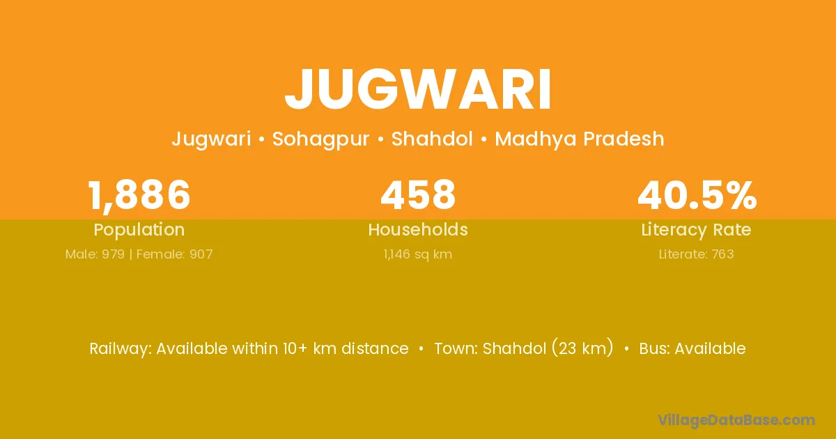 Shahdol (23 km) is the nearest town to Jugwari village for major economic activities and is located approximately 23 km away.