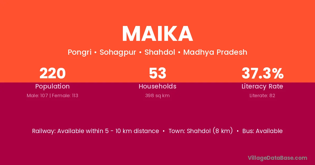 Shahdol (8 km) is the nearest town to Maika village for major economic activities and is located approximately 8 km away.
