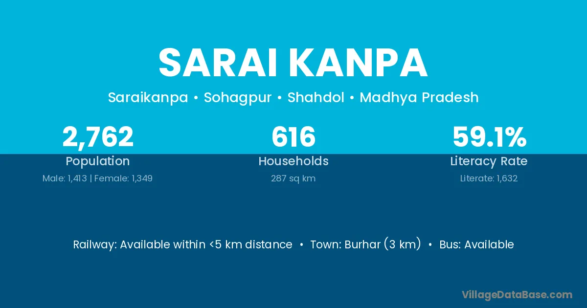 Burhar (3 km) is the nearest town to Sarai Kanpa village for major economic activities and is located approximately 3 km away.