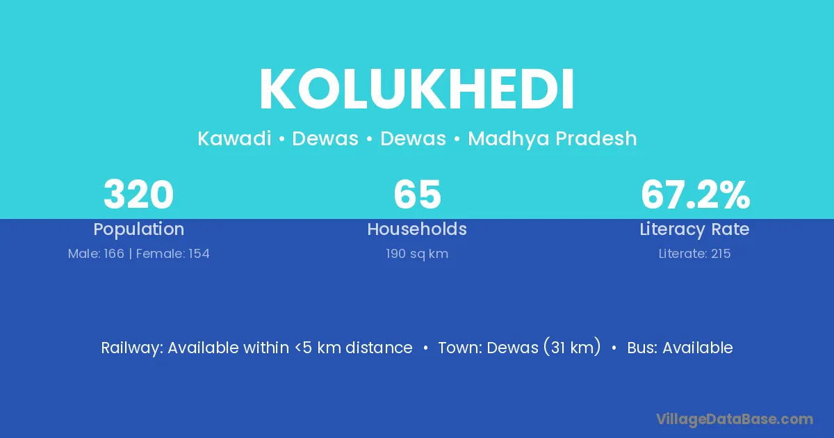 Kannod (10 km) is the nearest town to Kolukhedi village for major economic activities and is located approximately 10 km away.