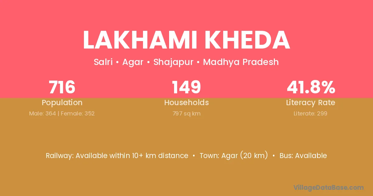 Agar (20 km) is the nearest town to Lakhami Kheda village for major economic activities and is located approximately 20 km away.