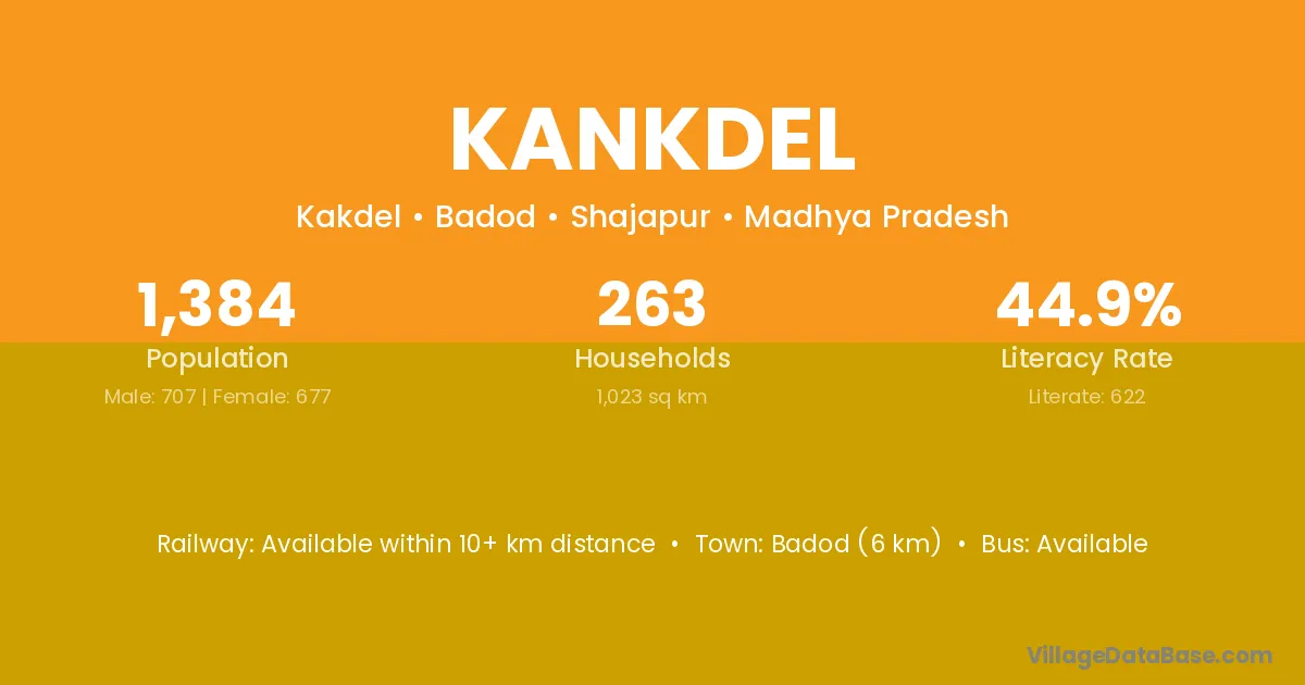 Badod (6 km) is the nearest town to Kankdel village for major economic activities and is located approximately 6 km away.