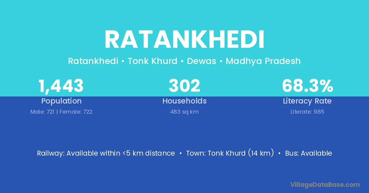 Agar (14 km) is the nearest town to Ratankhedi village for major economic activities and is located approximately 14 km away.