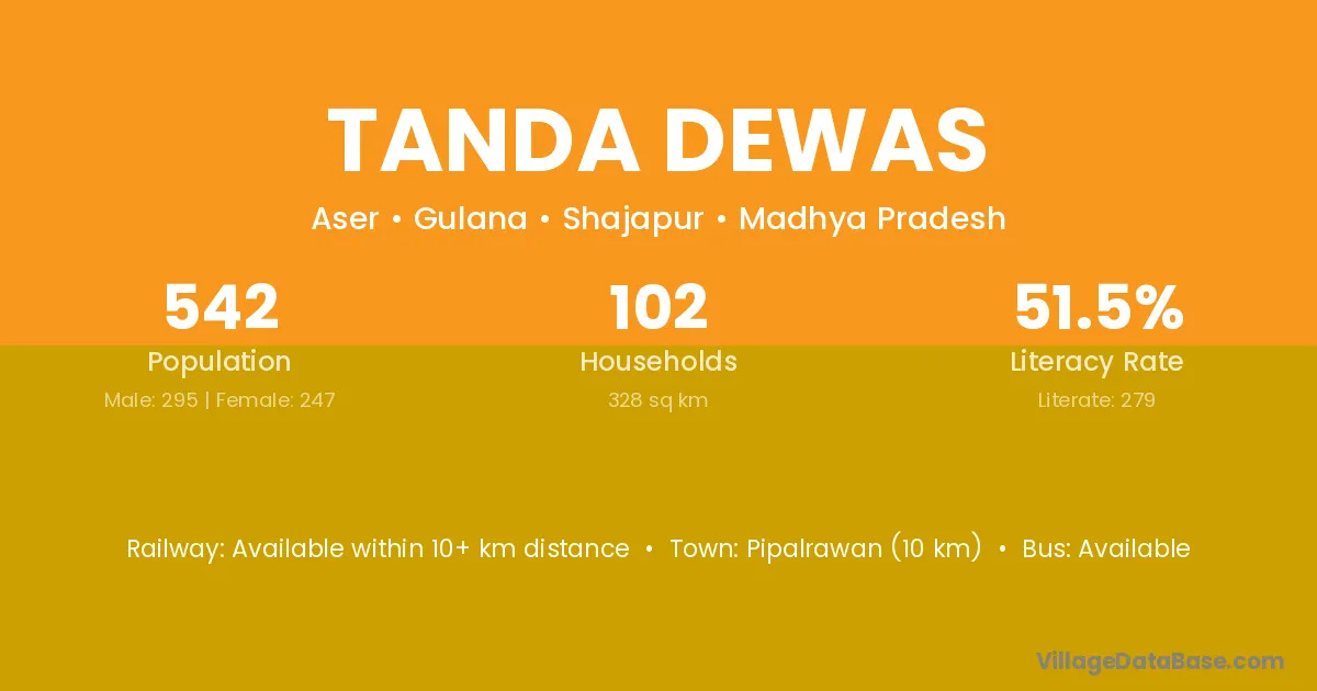 Tanda Dewas village has a total population of 542 people, of which 295 are males and 247 are females.
