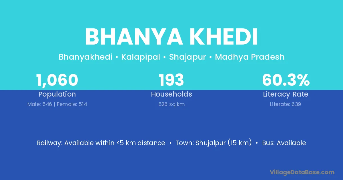 Bhanya Khedi village has a total population of 1,060 people, of which 546 are males and 514 are females.