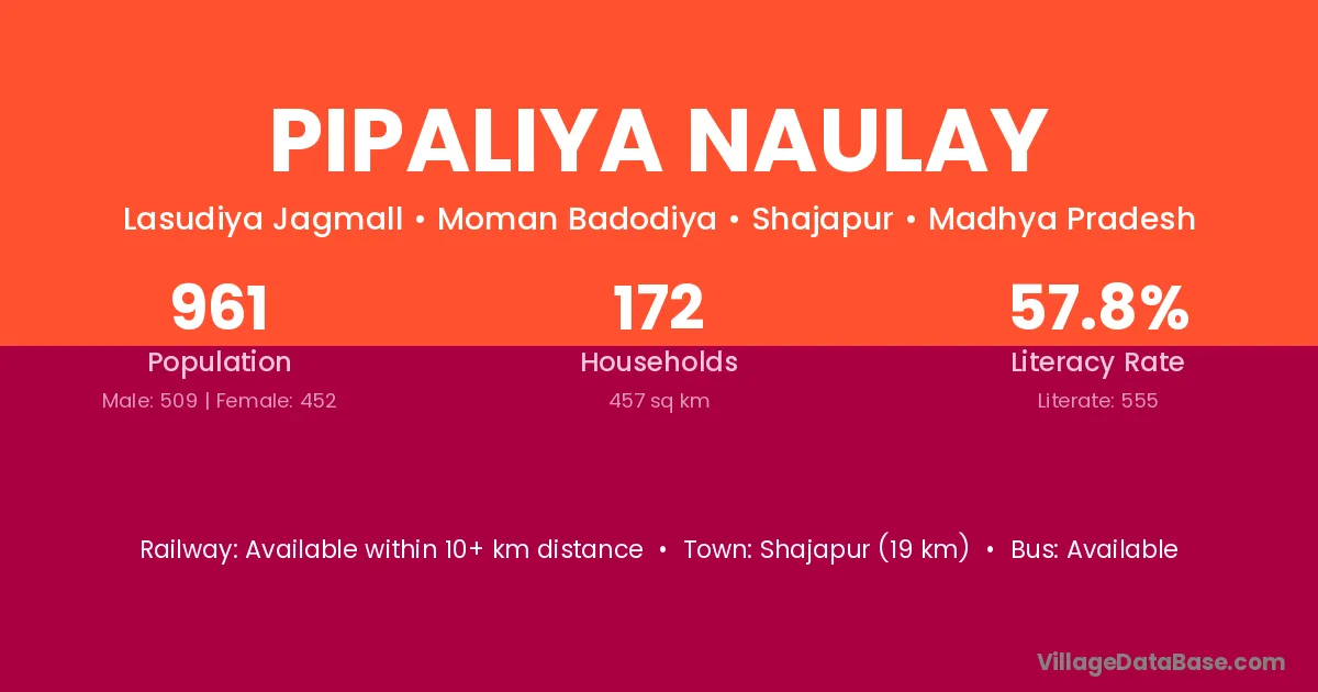 Shajapur (19 km) is the nearest town to Pipaliya Naulay village for major economic activities and is located approximately 19 km away.