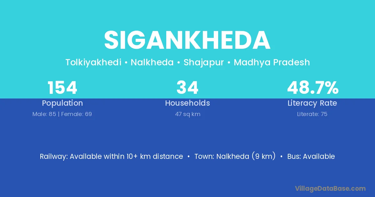 Nalkheda (9 km) is the nearest town to Sigankheda village for major economic activities and is located approximately 9 km away.