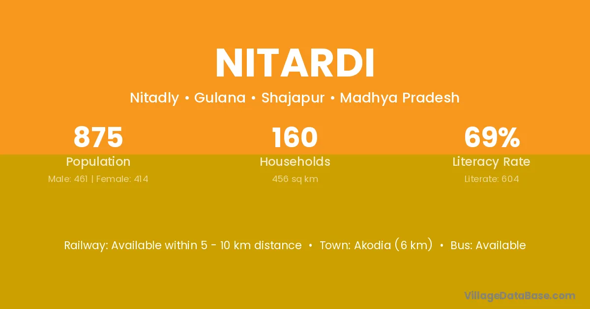 Shajapur (20 km) is the nearest town to Nitardi village for major economic activities and is located approximately 20 km away.