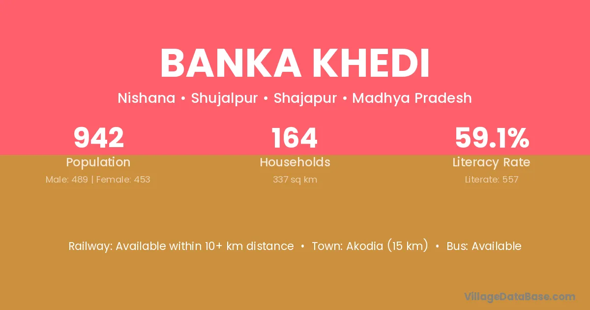Banka Khedi village has a total population of 942 people, of which 489 are males and 453 are females.