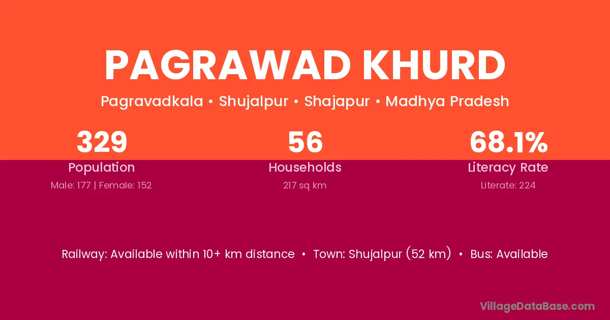 Shujalpur (52 km) is the nearest town to Pagrawad Khurd village for major economic activities and is located approximately 52 km away.